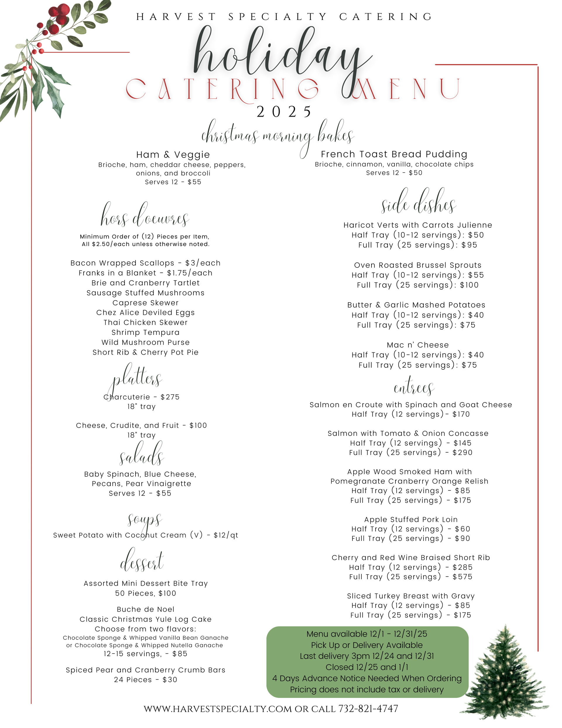 To place an order, call us at 732-821-4747 to speak with a catering coordinator